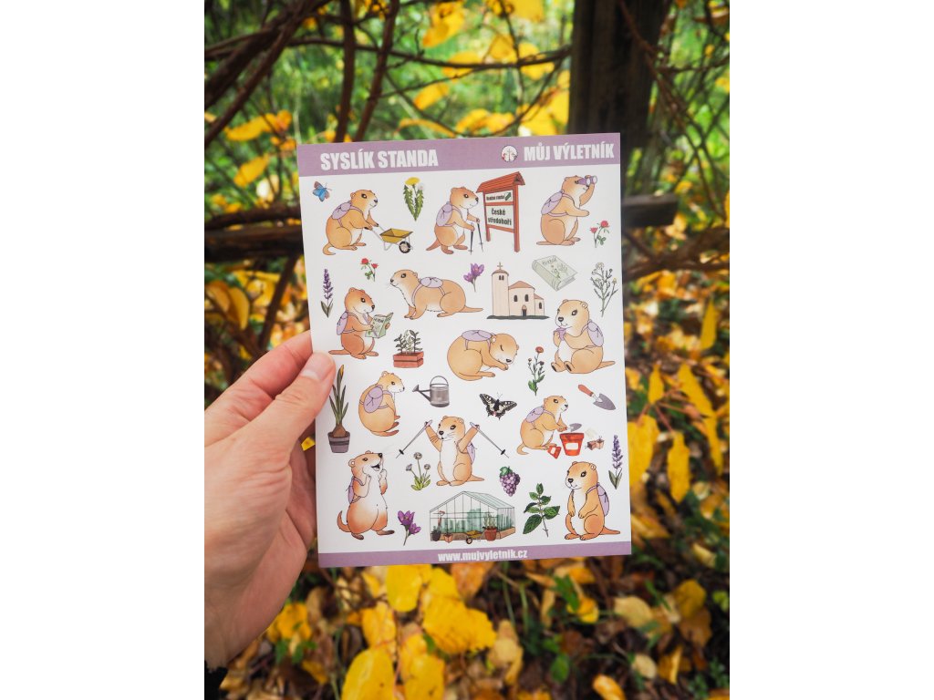 Aršík obsahuje 12x Syslíka Standu v nejrůznějších pozicích a aktivitách a další doplňkové ilustrace, která najdeš i v jeho Výletníku. Tento aršík obsahuje zejména bylinky, jelikož je to hlavní téma Výletníku. Dohromady na aršíku nalezneš 34 samolepek.Samolepky pomohou dětem třeba přilepit fotografii do Výletníku, dozdobit vypňovací stránky a udělat tak vyplňování Výletníku zase o něco zábavnější. ♥